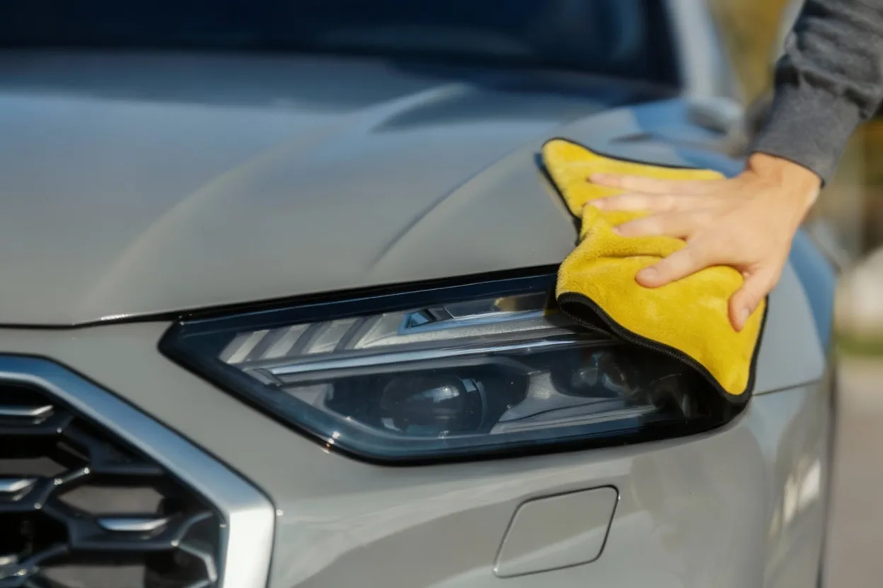 - The headlights are thoroughly cleaned to remove any dirt and debris.